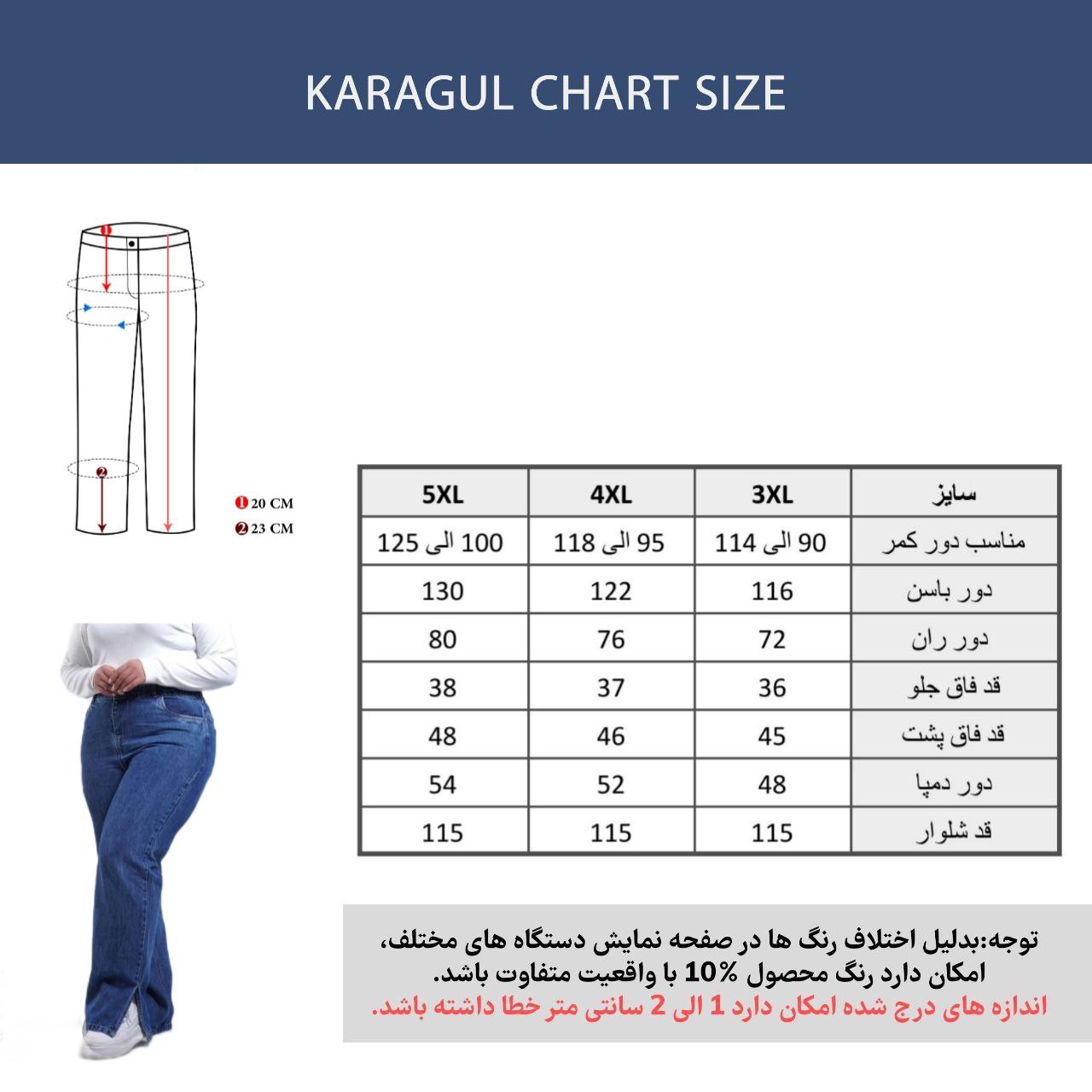 چارت سایزبندی و قد: موجود در تصاویر محصول