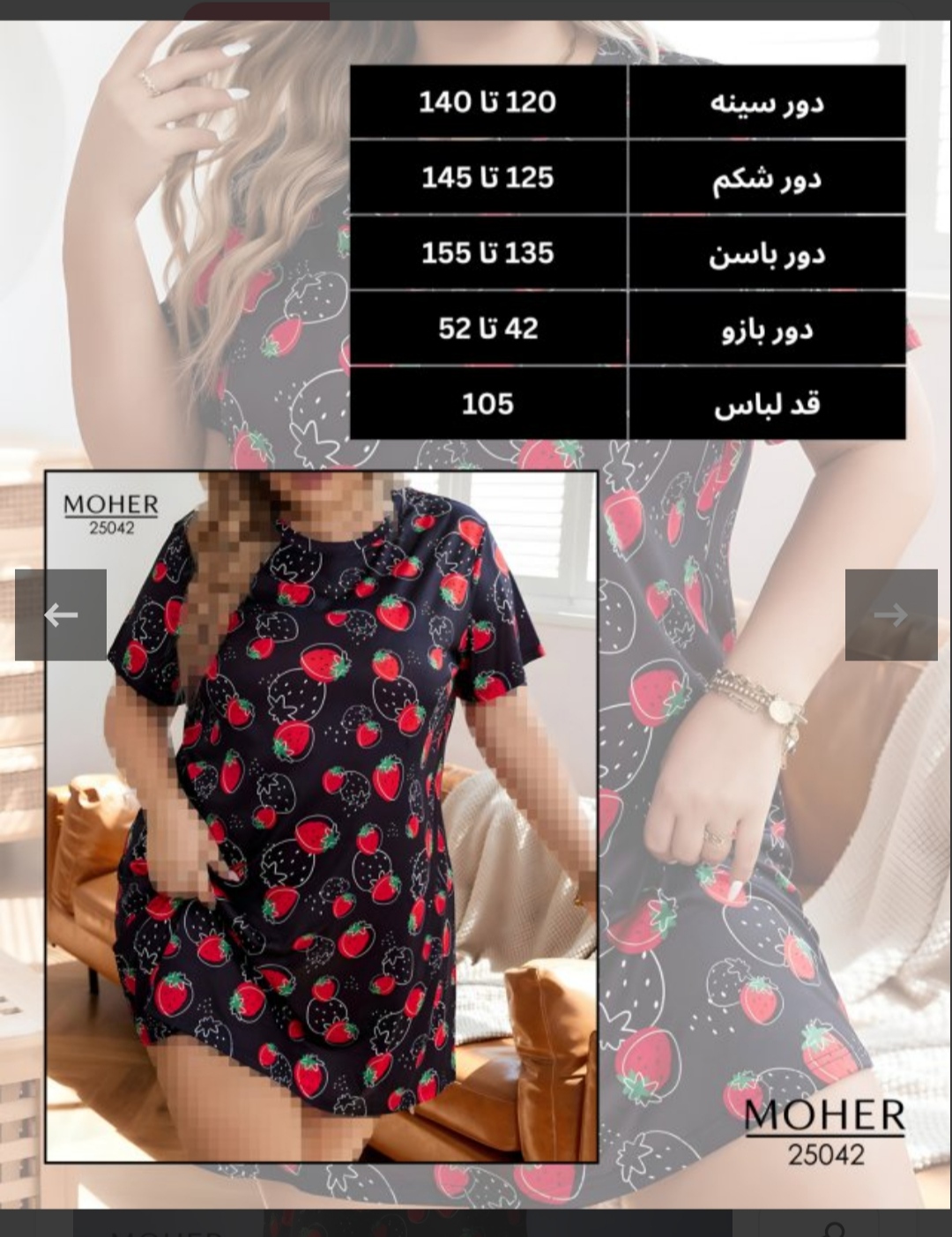 چارت سایزبندی و قد: موجود در تصاویر محصول