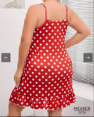 این لباس خواب زنانه سایز بزرگ با رنگ قرمز شاد و خالهای سفید، علاوه بر استایل خاص و جذاب، حس راحتی بینظیری را به شما هدیه میدهد. طراحی آن به گونهای است که برای سایزهای بزرگ کاملاً مناسب بوده و در عین حال فرم بدن را زیبا نشان میدهد.