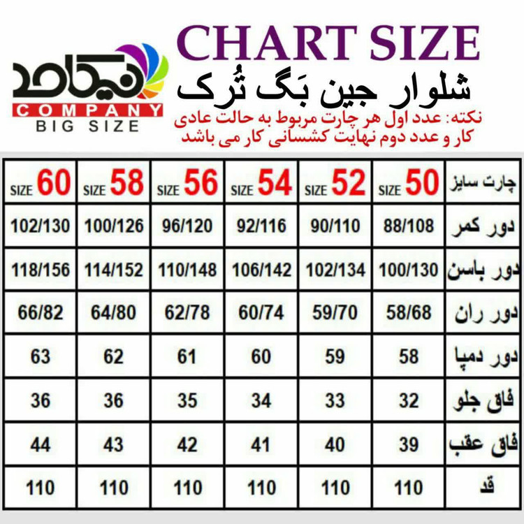 🔴 سایزبندی 50 الی 60 مطابق تعاریف چارت ❌ عدد اول حالت عادی کار و عدد دوم نهایت کشسانی ❌ جهت تعین سایز بهتر است که کشسانی در نظر گرفته شود تا تنخور بهتری داشته باشد ☘