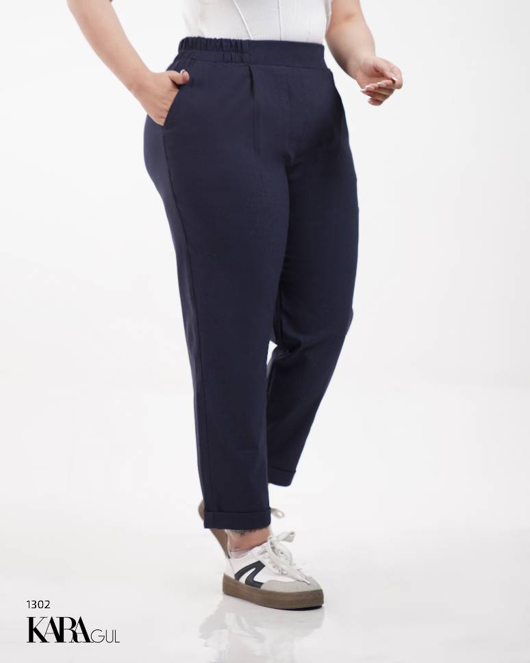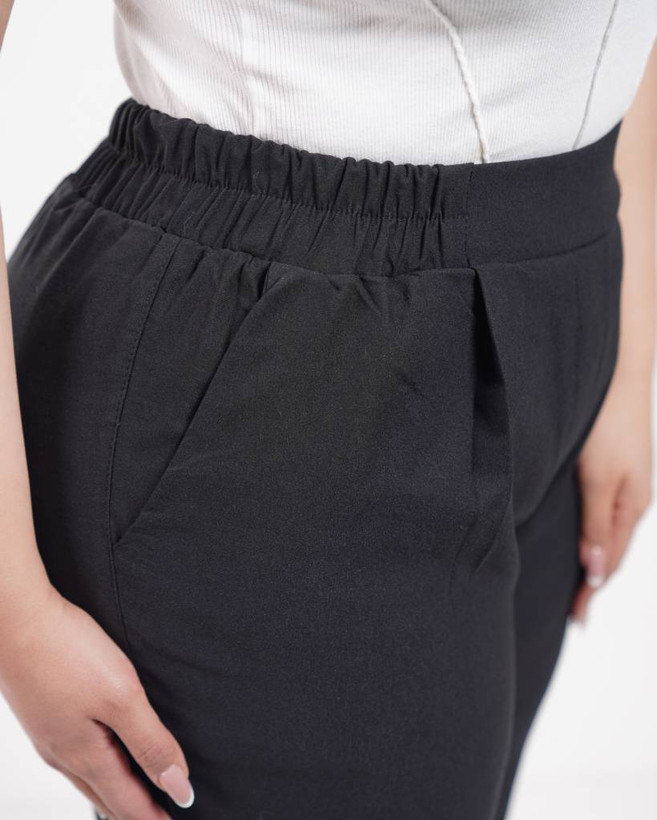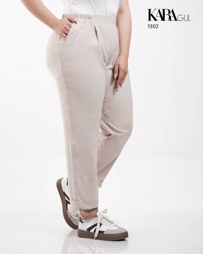 شلوار مام بغل پیلدار پشت کمر کش بدون دکمه و زیپ