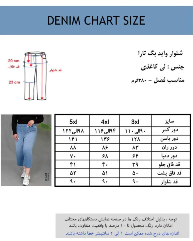 قد شلوار ۹۰ رنگبندی: آبی تیره ،آبی روشن، مشکی، زغالی تیره در ۳ سایز بزرگ