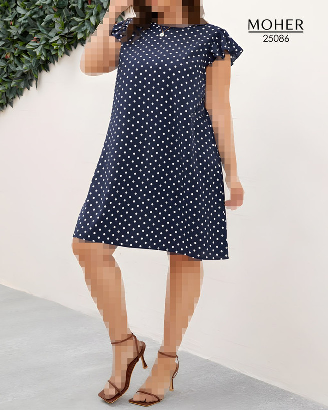 پیراهن زنانه کوتاه خالخالی و آستین چیندار