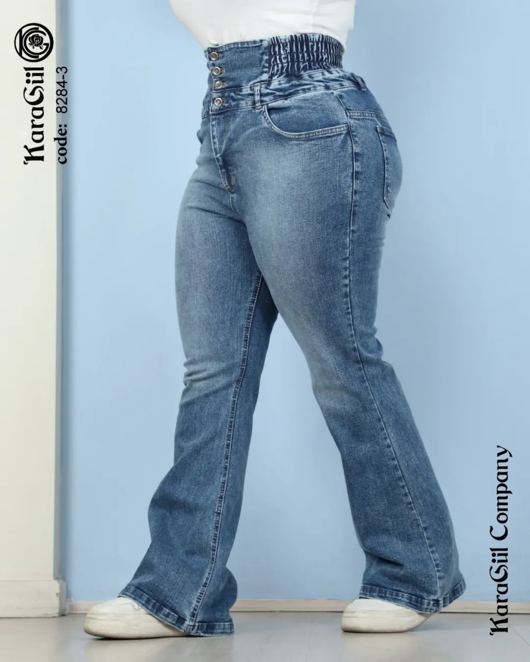 ناموجودشلوار جین دمپاگشاد سایزبزرگ مدل کمر برشدار و فاق بلند قد115
